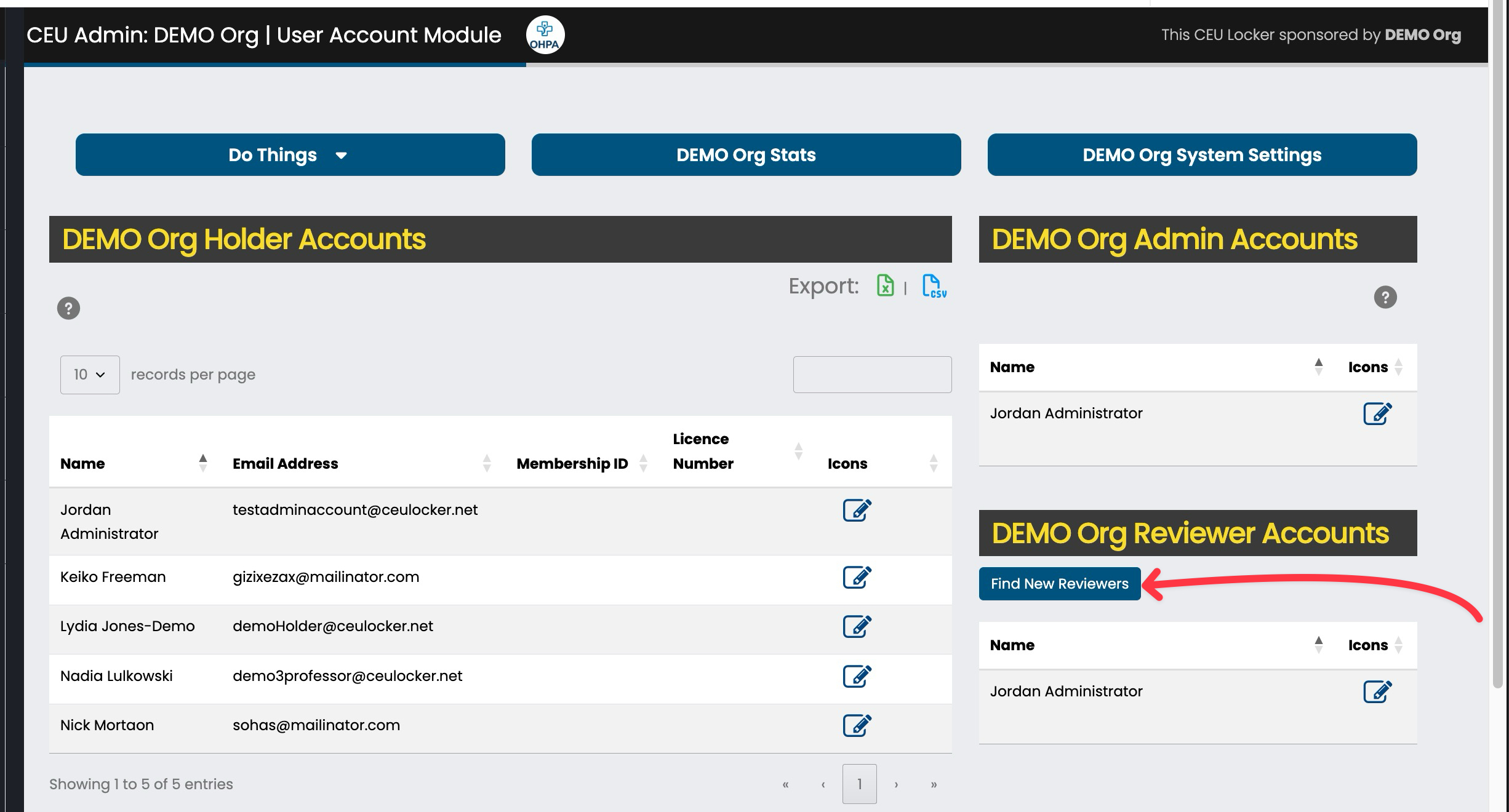 Answering these questions is optional for your CEU Holders, but if they do complete these answers, then their name and account will appear in your Admin panel User Accounts area for "Find New Reviewers"