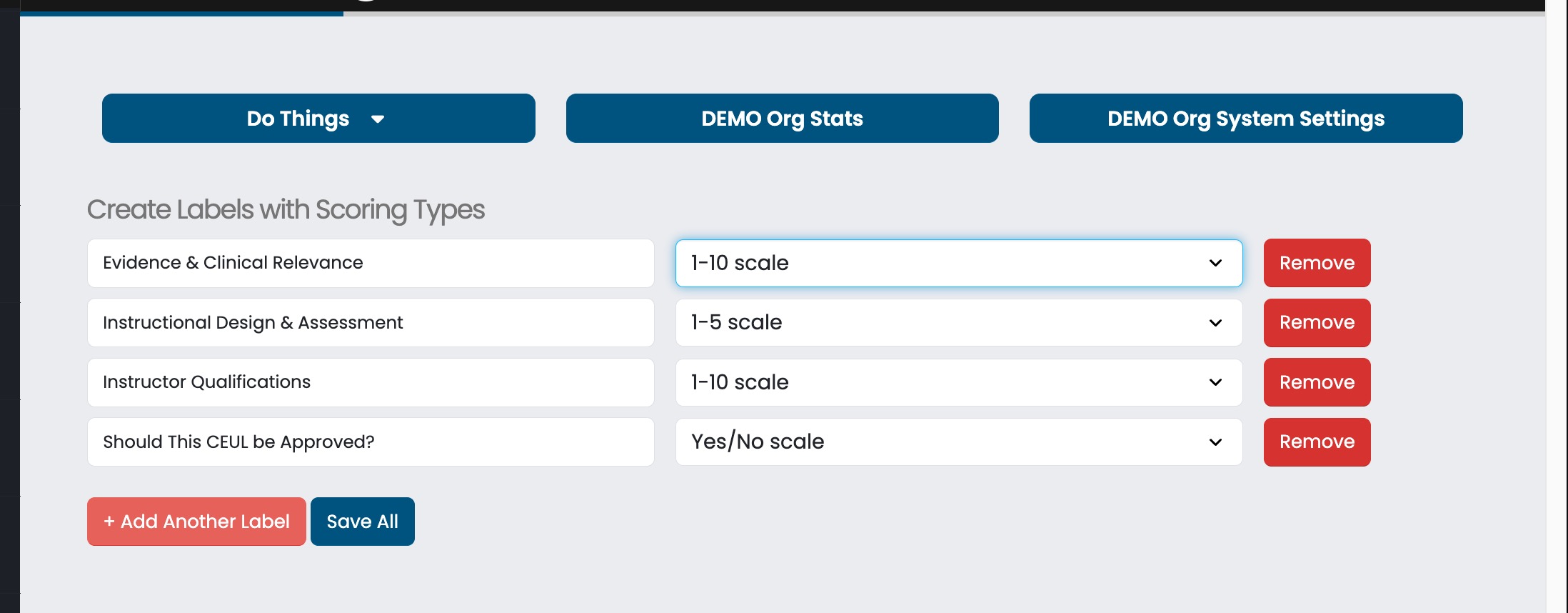 The reviewers scale management area of your Admin settings panel, allows you to establish a simple or more customized rubric for how your application reviewers complete their reviews.